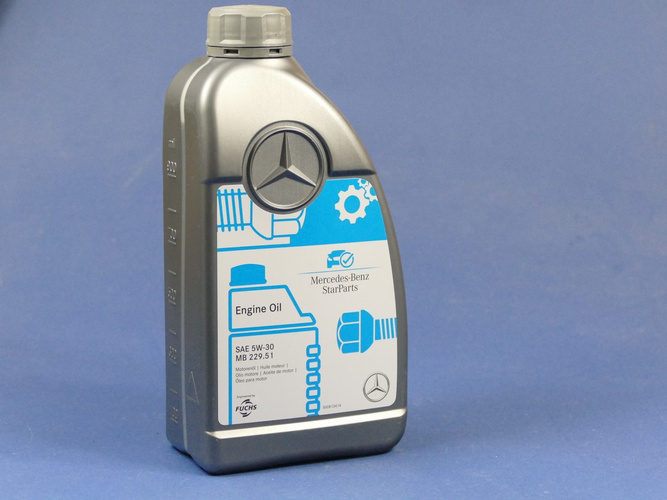 Oryginalny syntetyczny olej silnikowy Mercedes-Benz 5W30 MB 229.51, specjalnie opracowany do najnowszych samochodów Mercedes-Benz. Zalecany do silników benzynowych i wysokoprężnych z turbodoładowaniem dedykowany do samochodów z filtrem cząstek stałych (DPF)